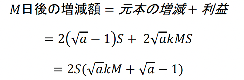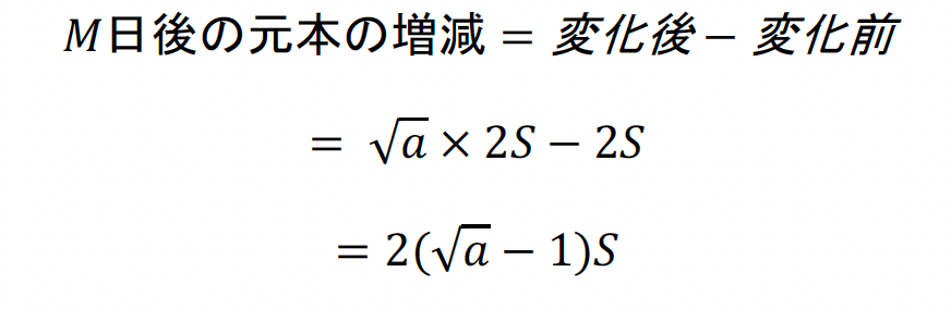 まず、M日後の元本の増減は、以下のようになります。※こちらのサイトを参考にしています。