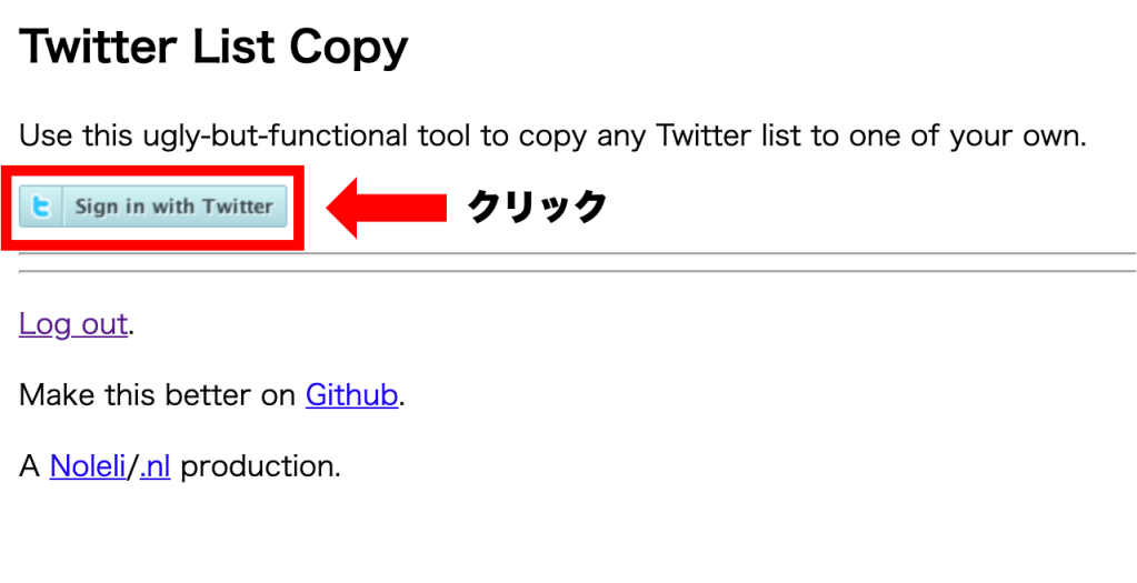 【3】そして、「Sign in with Twitter」をクリックして、リストの読み込み先のアカウントを連携させましょう。
