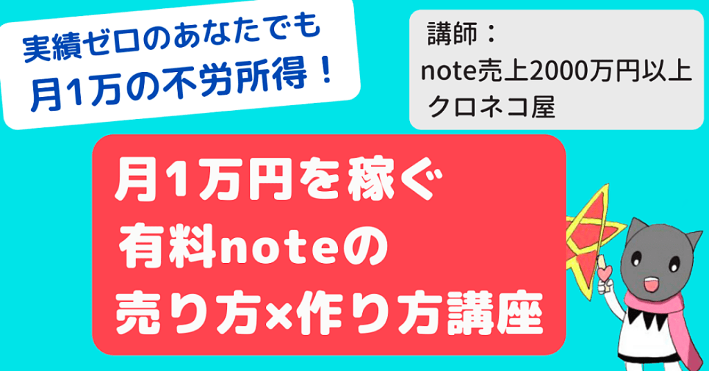 そんなクロネコ屋さんが3月4日に販売開始したのが、『月1万円を稼ぐ有料noteの売り方×作り方講座』というBrainの記事になります。