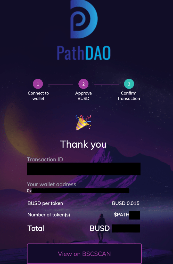 購入完了後、実際にトークンが配布される日や、その配布方法はTwitterやTelegramでアナウンスされますので、最新の情報をチェックしましょう。